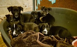 Und wieder wurden sechs winzige Hundebabys in einem Bananenkarton vor der Farm ausgesetzt.